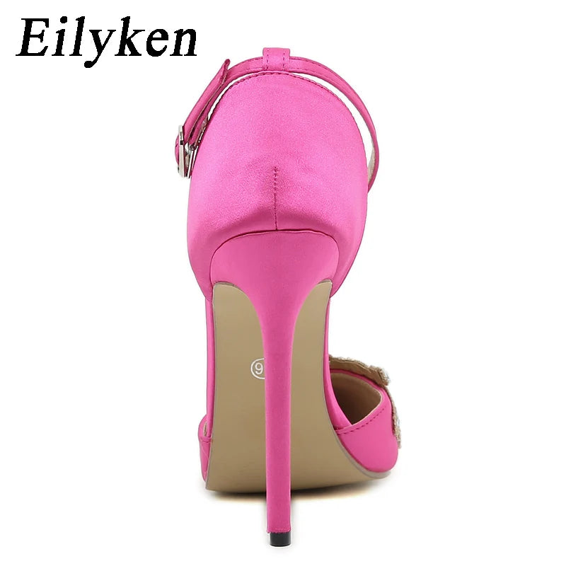 Sparkle with every step in our Crystal Ankle Strap Pointed Toe Stiletto Heels—crafted for the ultimate glam look. These dazzling heels feature a sleek pointed toe and a slender stiletto heel that elongates your silhouette. The ankle strap is adorned with shimmering crystals, adding a touch of luxury and ensuring a secure, elegant fit. Perfect for special occasions or a night out, these heels are designed to make a statement and elevate your style to the next level.