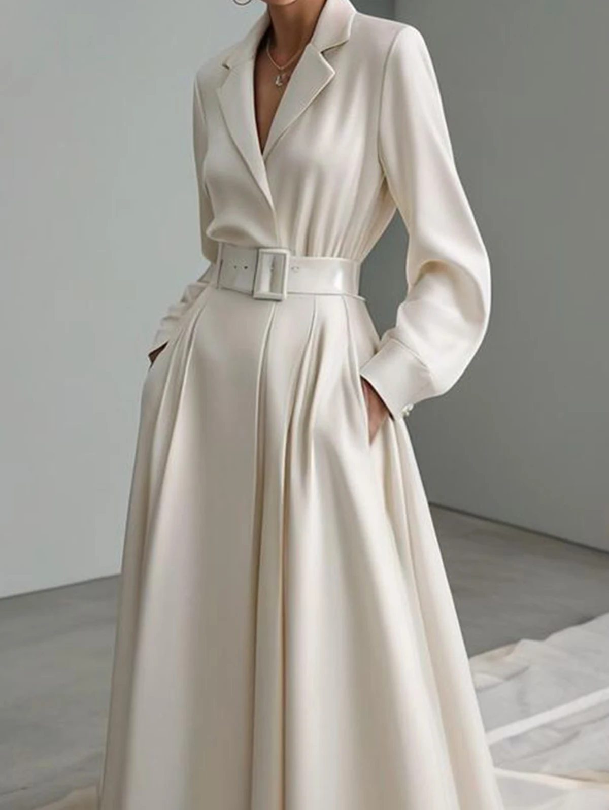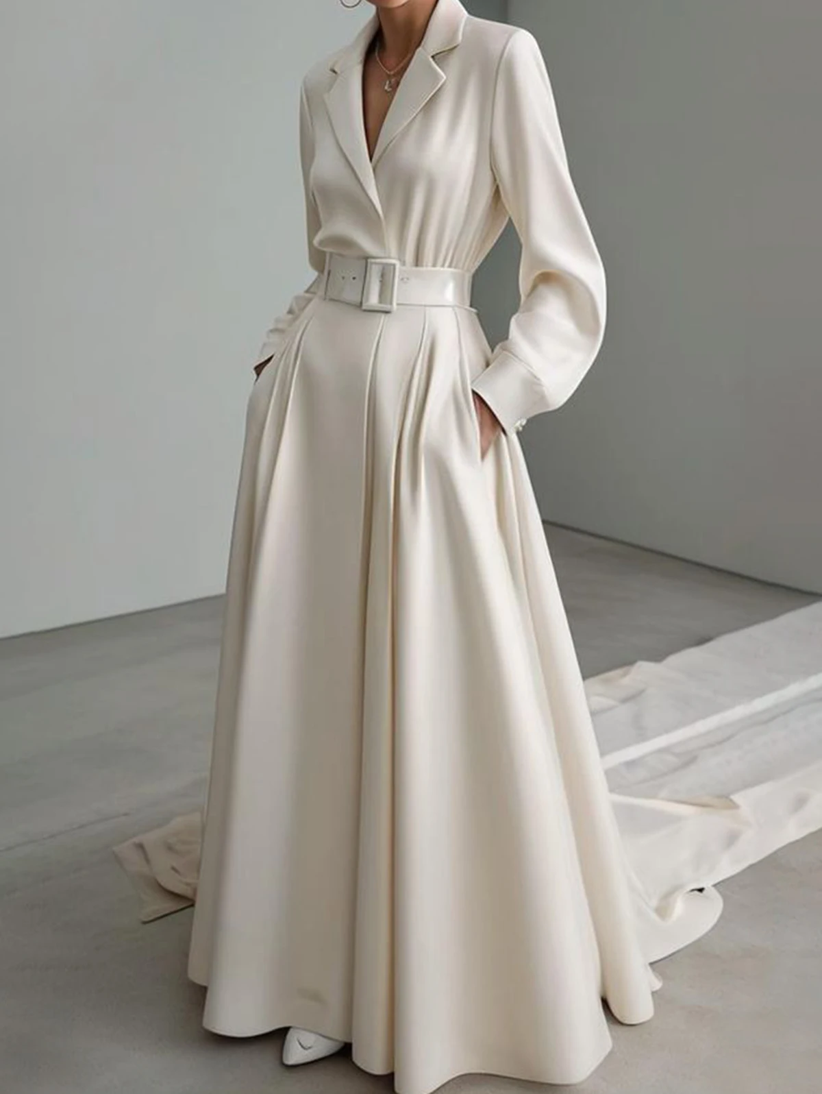 Channel timeless charm with our Elegant Vintage Bohemian A-Line Maxi Dress. This stunning dress features a classic collared neckline and relaxed, long sleeves, creating a vintage-inspired look with a modern twist. The included belt cinches the waist for a flattering silhouette, while the spacious pockets add both style and functionality. Perfect for any occasion, this flowing A-line maxi dress combines bohemian elegance with comfort for an effortlessly chic look.
