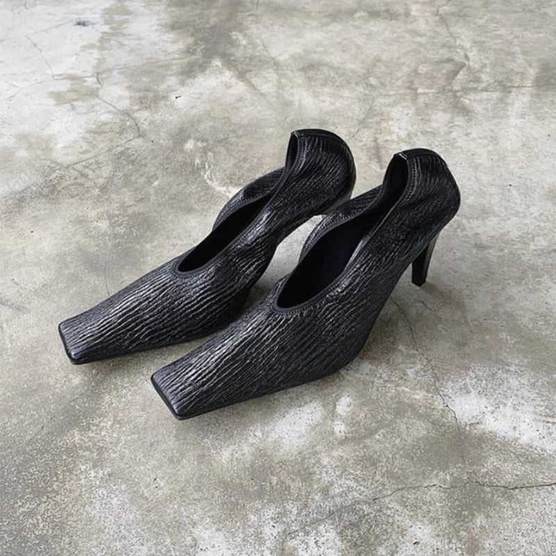 Channel timeless elegance with our Retro Soft Leather Pleated Square Toe Pumps—designed for the vintage-inspired fashion lover. These pumps feature a unique pleated design and a stylish square toe, giving a nod to classic retro aesthetics while ensuring modern comfort. Crafted from soft, supple leather, they provide a perfect fit for all-day wear. Ideal for both work and casual outings, these pumps are the ultimate blend of sophistication and versatility.